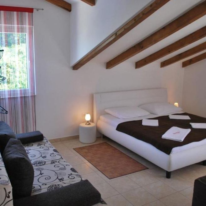Vom Balkon blicken Sie in die Bucht Šešula.